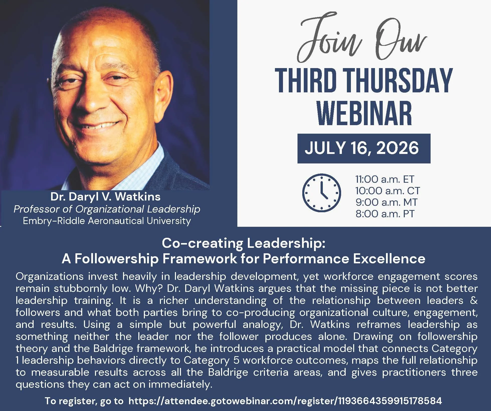 Speaker: Dr. Daryl V. Watkins, Professor of Organizational Leadership at Embry-Riddle Aeronautical University